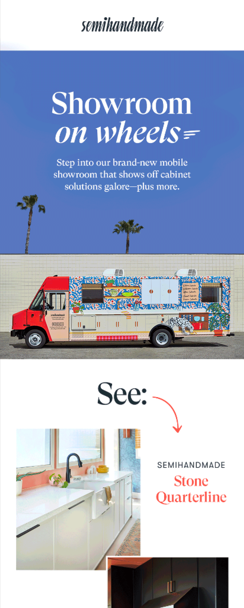 At Semihandmade, we took a retired box truck and turned it into something way cooler—a fully branded mobile showroom that hit the road for design events in cities across the U.S. The goal? Bring the Semihandmade experience straight to the people. No showroom appointments, no pressure. Just a rolling kitchen/bathroom makeover.